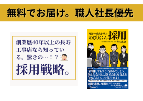 無料支援制度相見積もりから抜け出す。選ばれる工事店への第一歩を無料で。 こんな時代だからこそ、もっと職人社長を支えたい。 「相見積もり競争から抜け出し、安定経営を実現したい」 「値下げせずに契約が取れる仕組みを作りたい」 「集客やリ...
