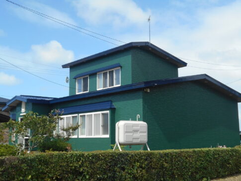 深みのあるグリーン×ブルーの外壁塗装で大人な雰囲気を演出したサイディング壁住宅!