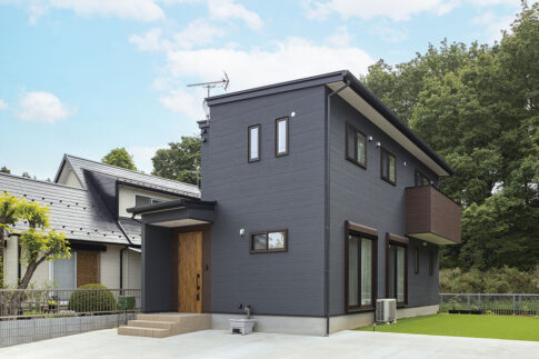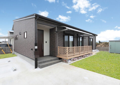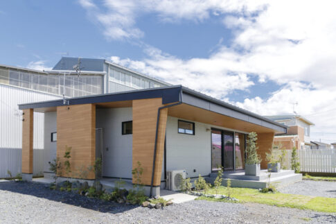 素材感が映える!木目調外壁とグレー系外壁塗装を組み合わせたお洒落な平屋住宅