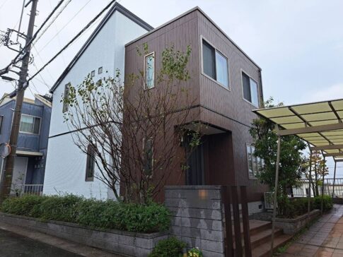 落ち着いたブラウン外壁とホワイトの組み合わせで上品な外観へ