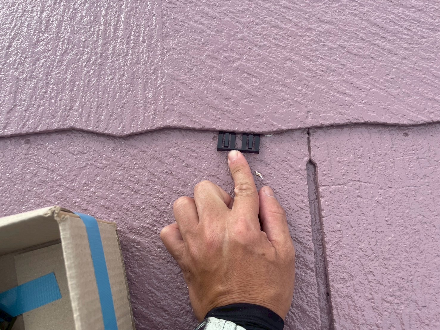 屋根の縁切り部材です。こちらのご自宅は隙間が多く空いていましたので塗膜がひっついてる箇所だけ縁切り部材を挿入し雨水が中でたまらないように縁切りをいたしました。
