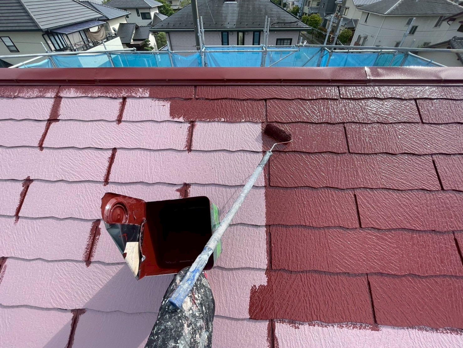 今回は屋根塗装の遮熱塗料上塗り作業の様子をご紹介させていただきます。