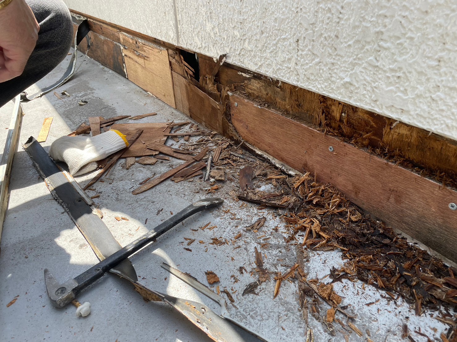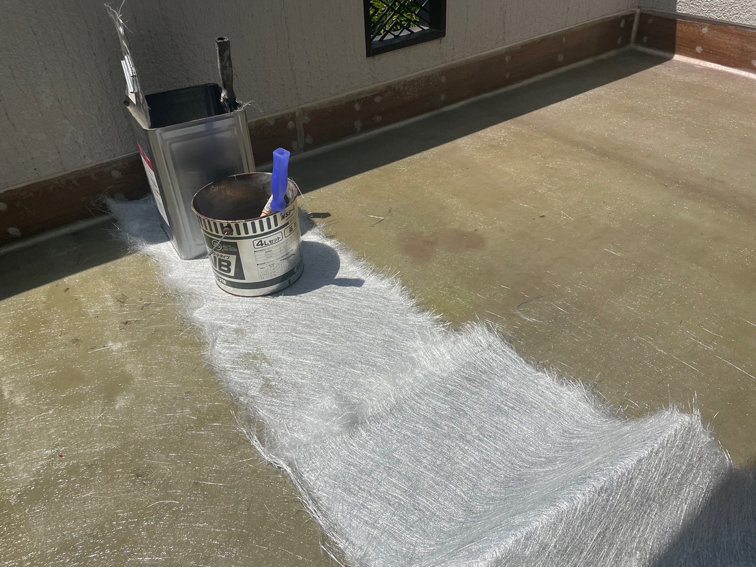 バルコニーのFRP防水工事をしました。バルコニー立上り下地が傷んでいたので、立上りの防水下地からの改修工事になります。。