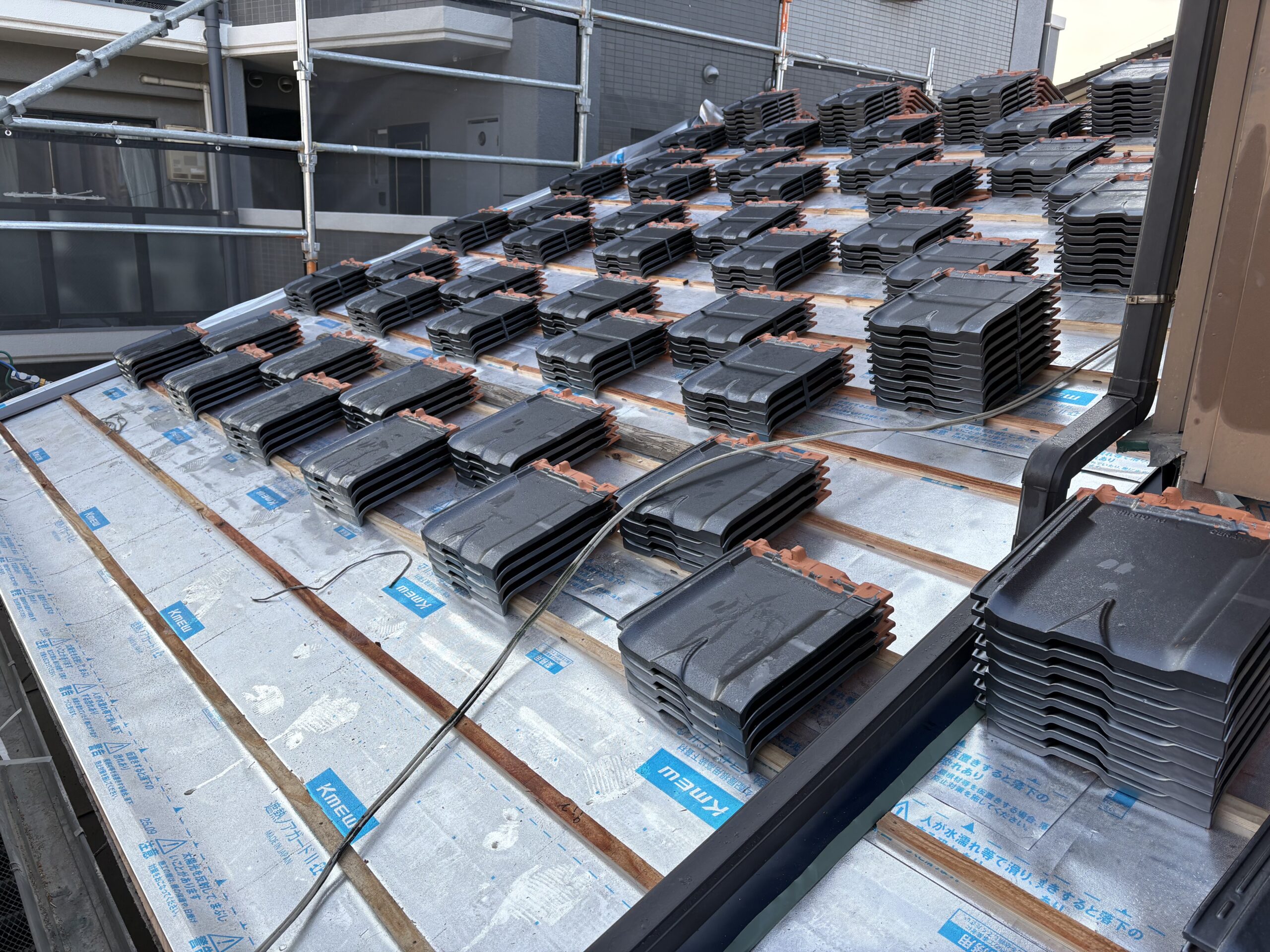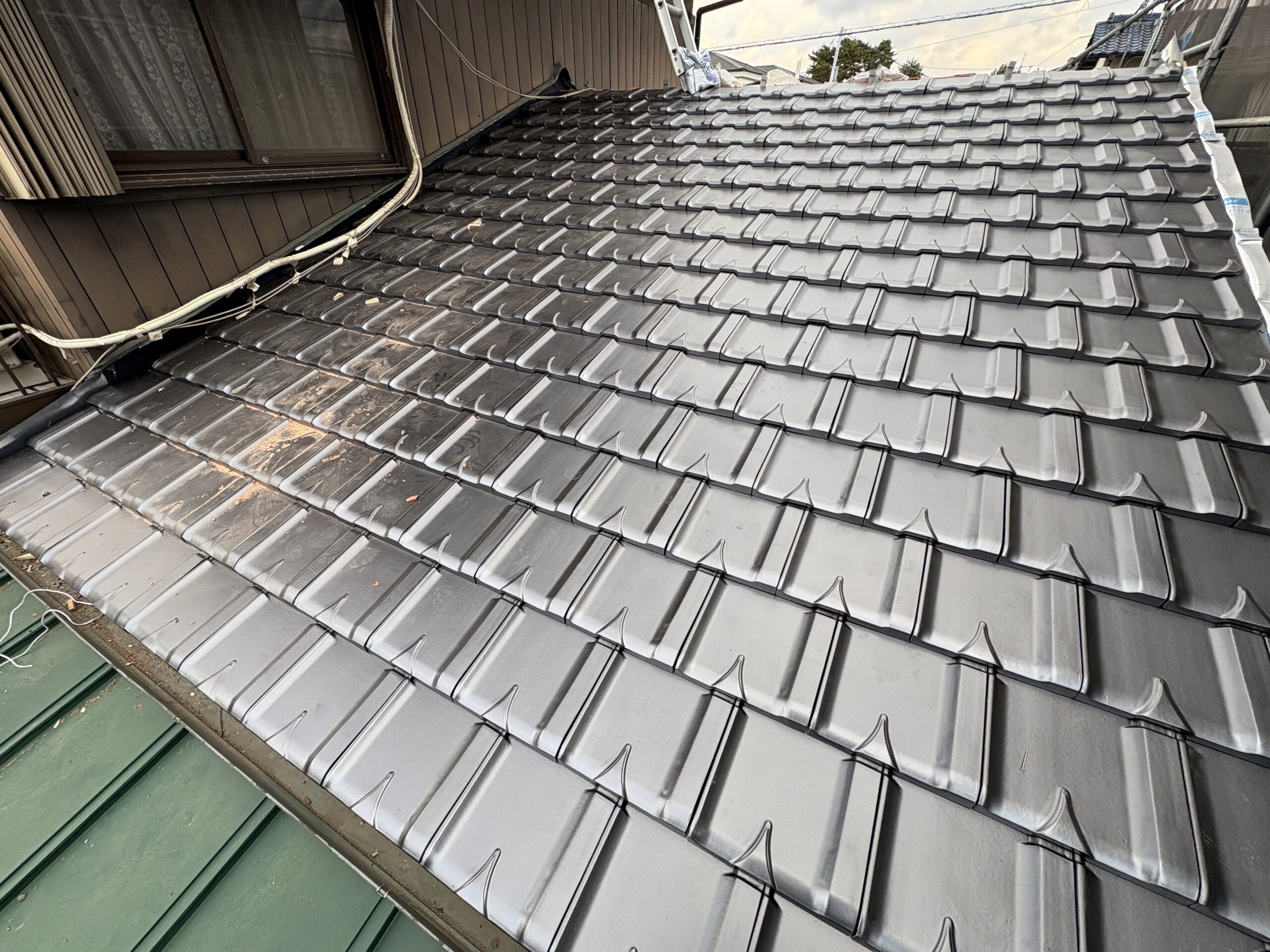 今回はメタリック色の三州瓦を使用しましたが、上質な輝きにうっとりしてしまいました。笑