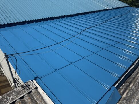 こちらは、島根県出雲市の外壁塗装・屋根工事専門店「吉田塗装」が手がけた、こだわりの施工事例。 出雲市知井宮町のお店の瓦棒屋根を、色鮮やかな青色で美しく屋根塗装工事。太陽の光がまぶしく反射して、塗膜が輝いています。 ...