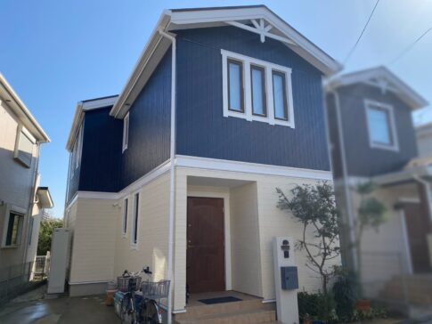 ワンポイントの白と濃紺の外壁塗装でサイディング壁住宅を渋くイメチェン!