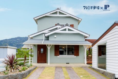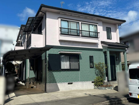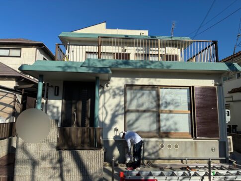 南風原町の傷んだお家をホワイトに外壁塗装!防水工事はライトグリーンで