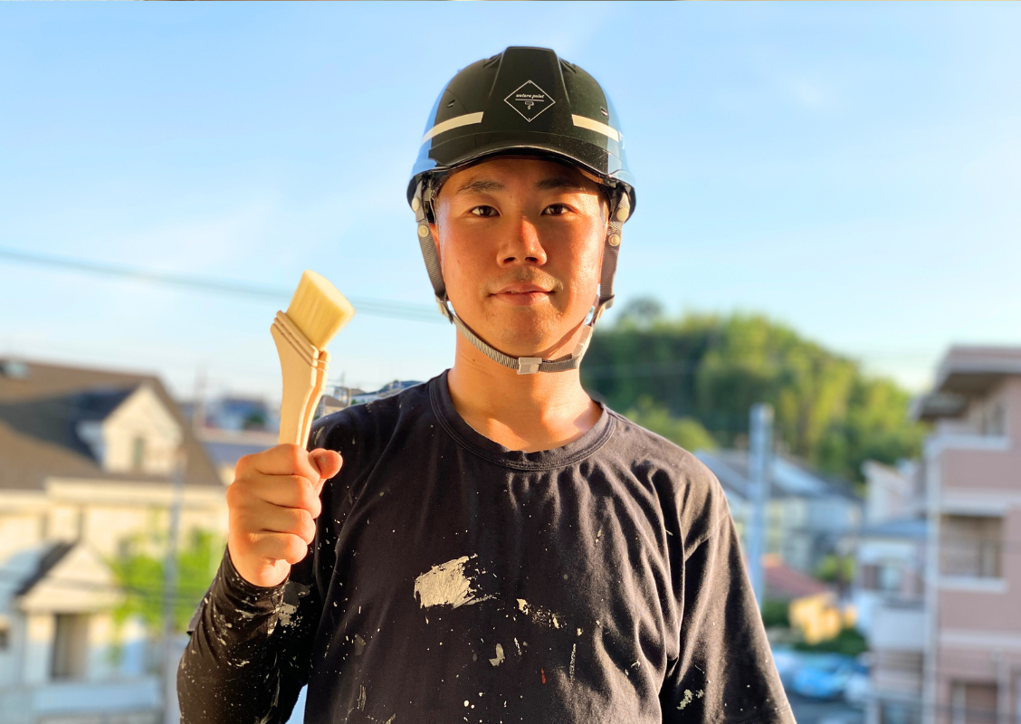 「体が一番の商売道具であるこの仕事において、私の若さと経験は大きな強みです。」つまり、ベテラン職人にはベテラン職人の良さがあるが、心身ともに厳しいといわれる塗装業界において(挫折することなく)代表親方の若さでこれだけの施工経験を持つ職人は業界としても非常に重宝されることなのだ。また、「私は毎日の現場仕事以外に、趣味のサッカーや筋トレを日課にしていて、体力には自信があります。これまで培ってきた塗装技術に加え、ミリ単位の施工を可能にする視力で細部にまでこだわり、わずかな塗り残しも見逃しません。