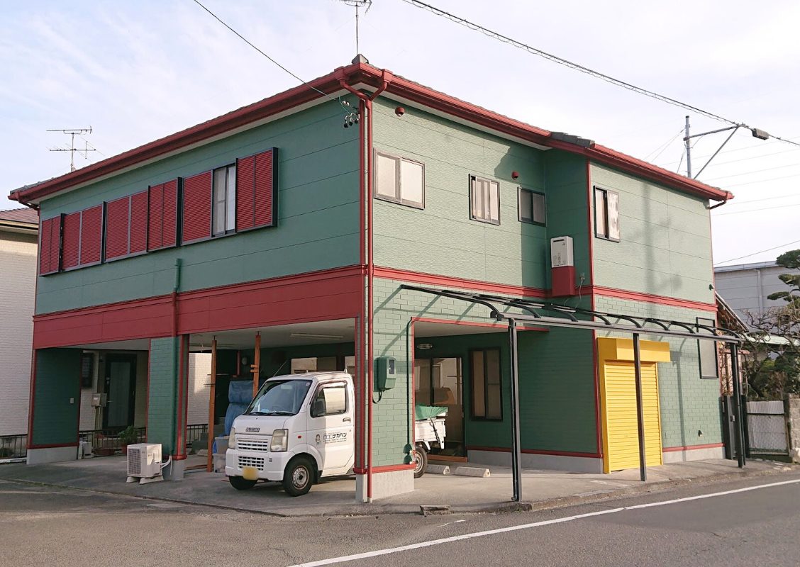グリーンとレッドの2色デザインに外壁塗装!
