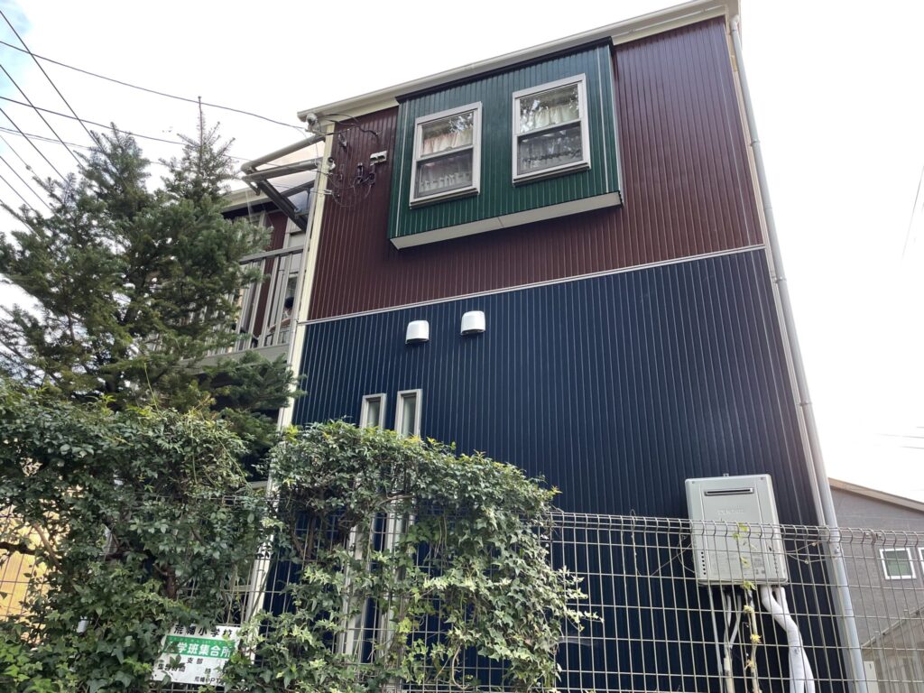こちらの事例は、ベストデザイン賞を受賞した外壁塗装で、外壁にはなんと 5色の塗料 を使用。さらに、目地コーキングにも 4色のカラー を使い分け、職人が一つひとつ丁寧に塗り分けた、非常に完成度の高い多色デザイン塗装です。