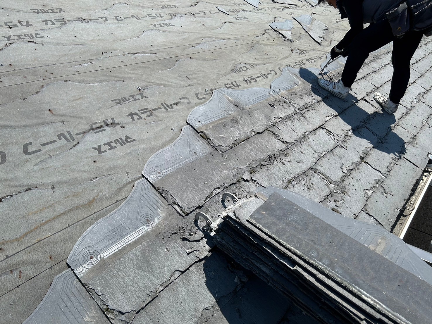 葺き替え工事では、既存屋根を全て撤去していきます