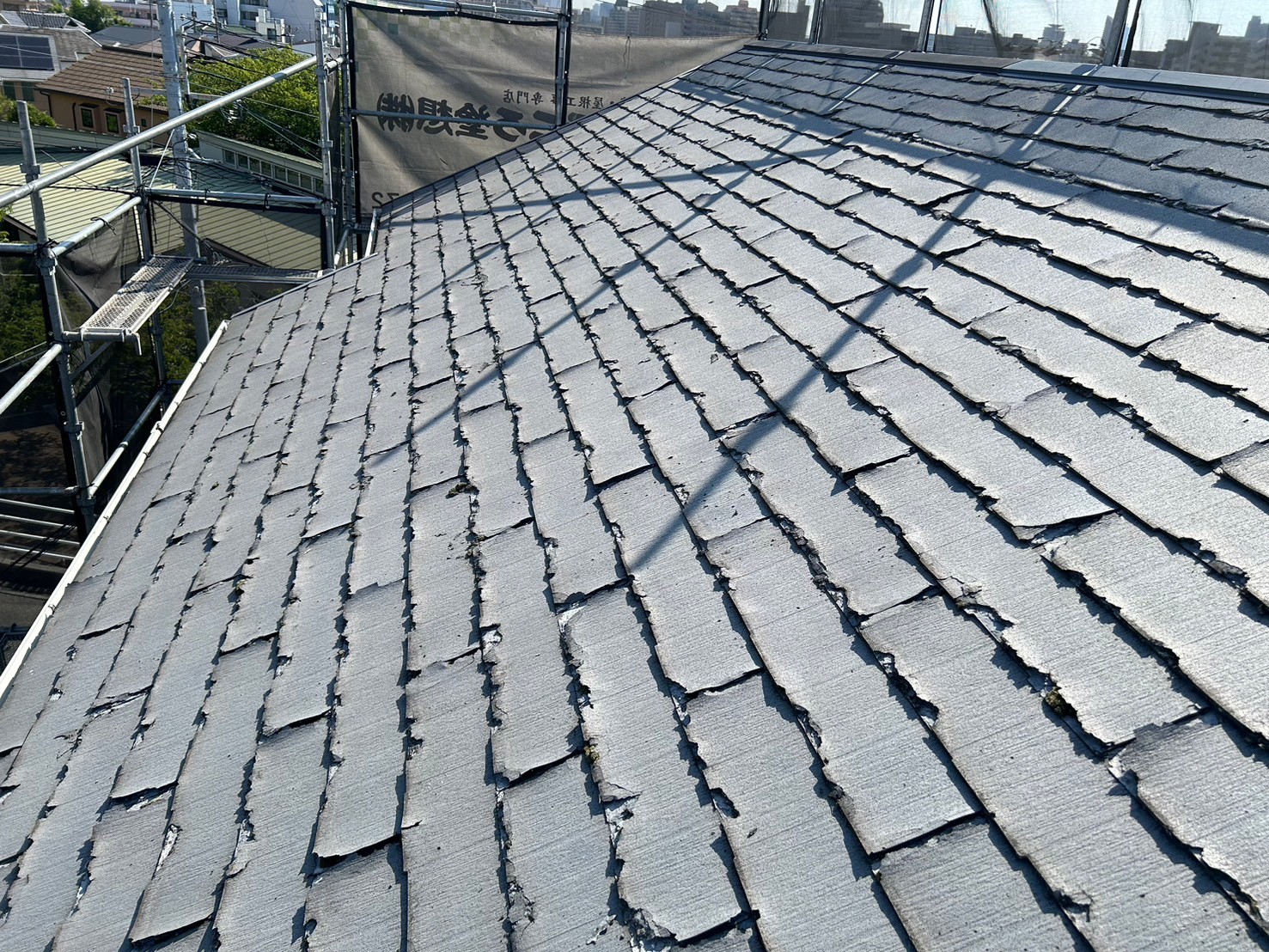 パリパリとスレート瓦がめくれます