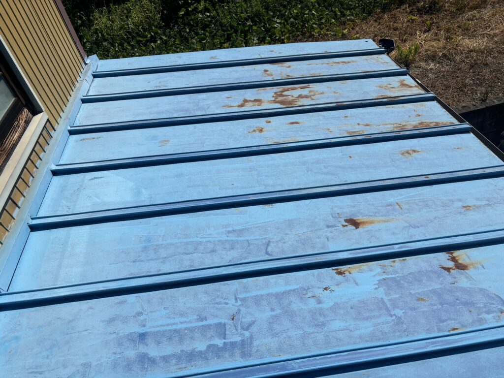 和風住宅の瓦棒屋根を錆び止めからブルーが美しく映える仕上がりに屋根塗装!