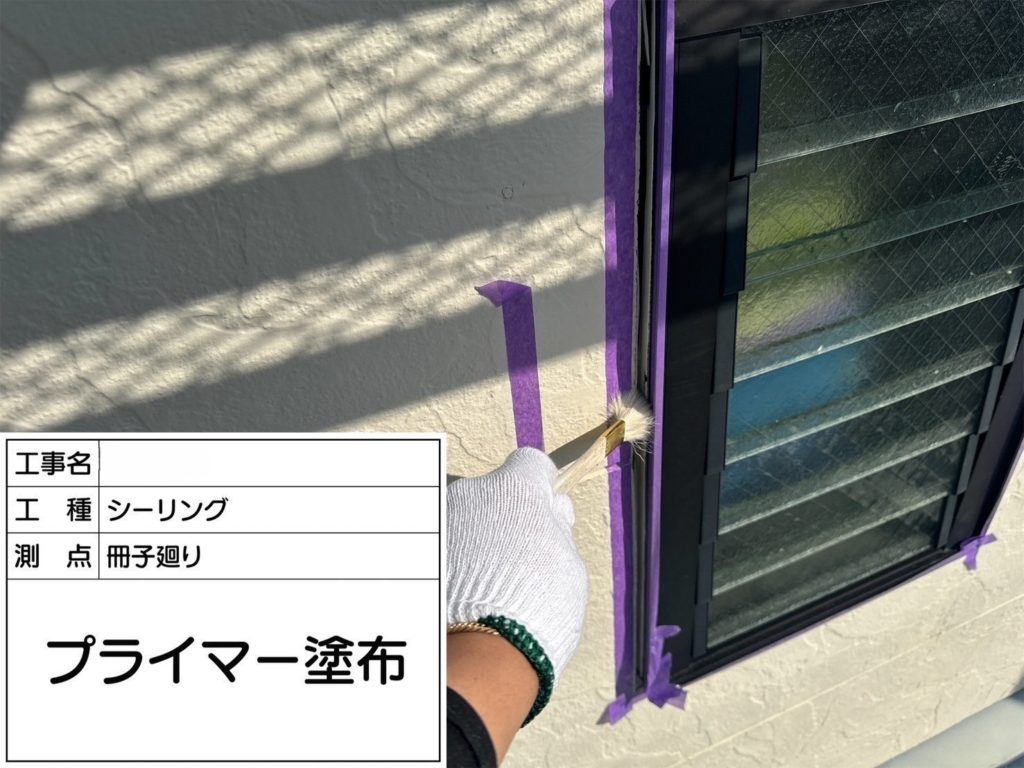 まずは古いシーリングを撤去!そのあと、密着を良くするプライマーを丁寧に塗って、