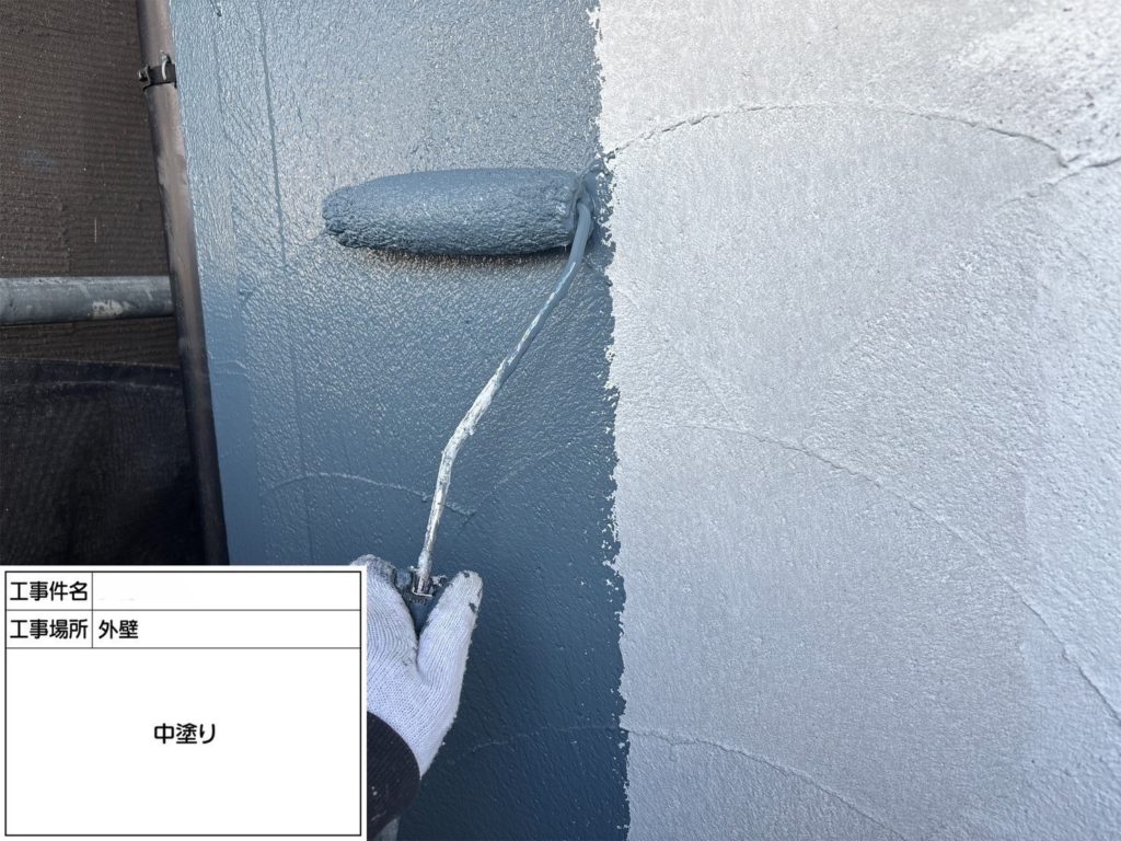 次は、中塗り作業に入ります!中塗りは外壁塗装における「下塗り」「上塗り」の中間工程です!