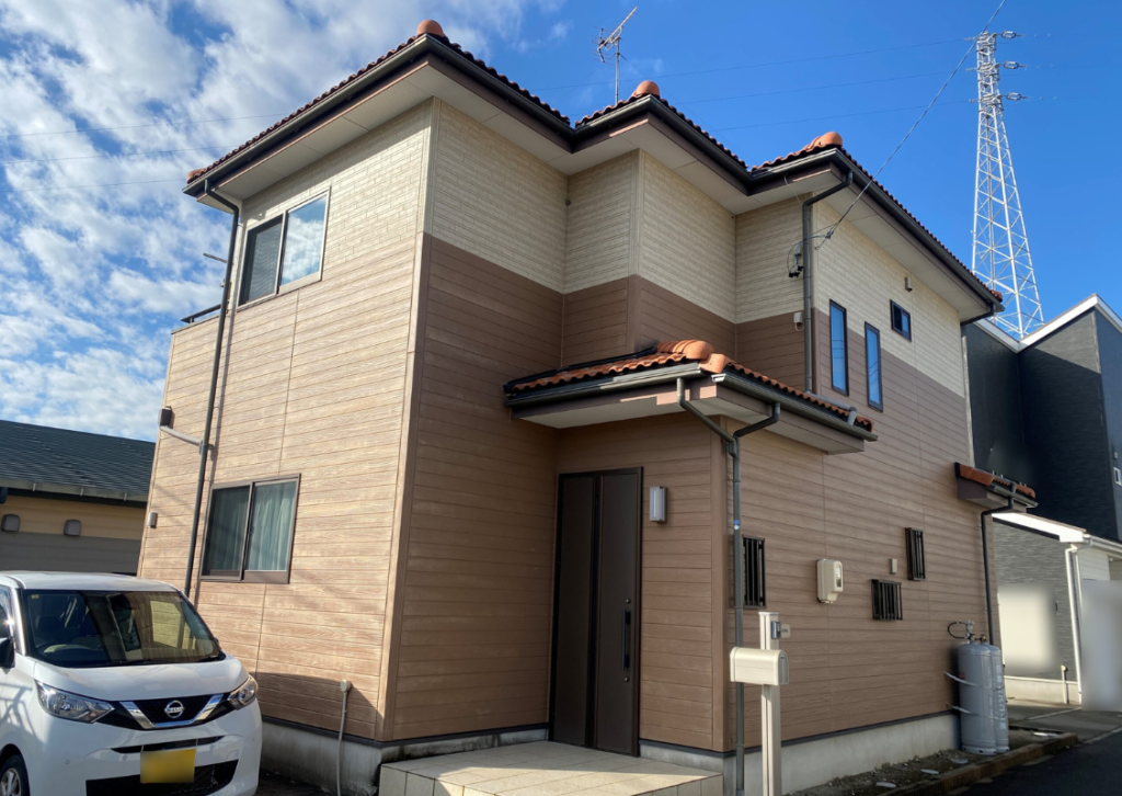 外壁はツートンカラーのデザインで、ホワイトを基調にブラウンを組み合わせた温かみのある外観へと生まれ変わりました。耐候性に優れた塗料のため、色あせしにくく長期間にわたって美観を保持できる点が大きな魅力です。